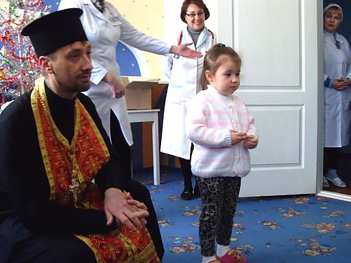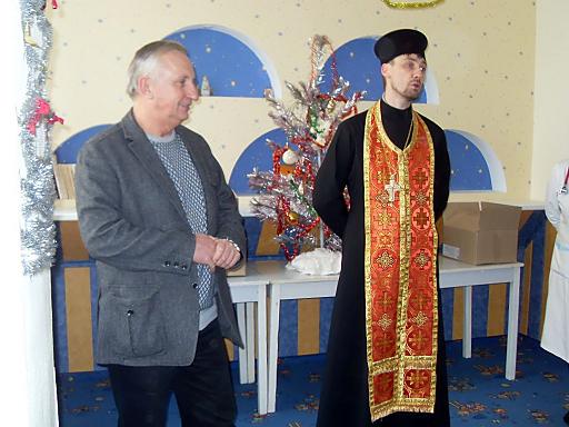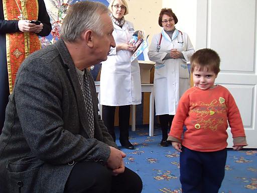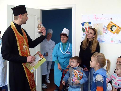 В День Святого Николая пациентов детского отделения Херсонской городской клинической больницы им. А. и О. Тропиных поздравили главный врач больницы Леонид РЕМЫГА и настоятель храма святой великомученицы Варвары, расположенного на территории медучреждения, Сергей ДМИТРИЕВ.