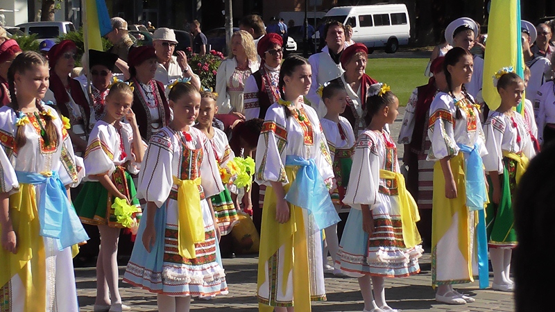 Торжественно был исполнен Государственный Гимн Украины, который поддержали несколько сотен пришедших на митинг горожан. Как символ свободы и мира, в небо были выпущены шары национальных цветов, а также вспыхнул сине-жёлтый салют из конфетти. Царила волнительная атмосфера, звучали выступления творческих коллективов областного центра.