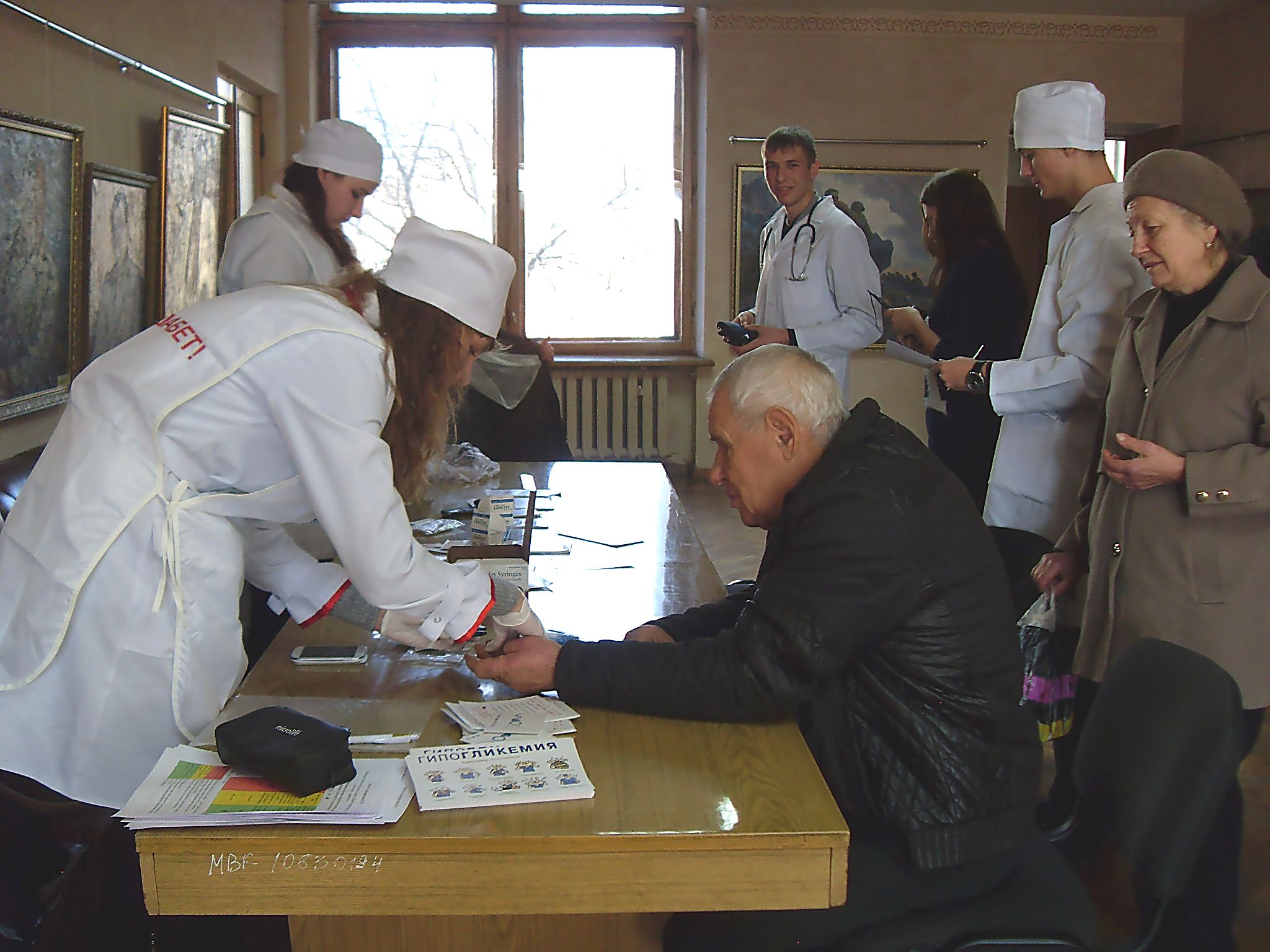 Конференция «День диабета» началась в холле исполкома, где для ознакомления посетителей была представлена выставка-продажа диабетической продукции и средств самоконтроля. Всем желающим бесплатно проводилась экспресс-диагностика уровня глюкозы в крови, измерение артериального давления, раздавались тематические буклеты.
