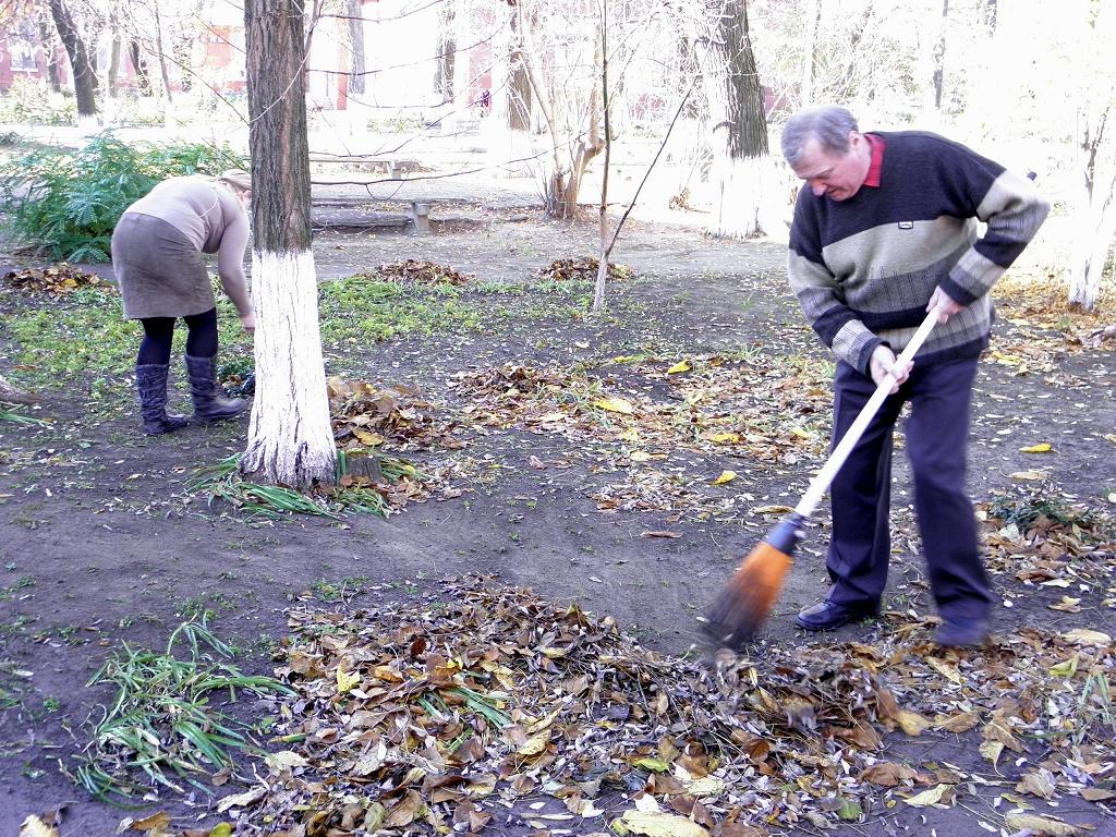 Собраны опавшие листья, мусор, сухие ветки, обработаны клумбы и цветники.