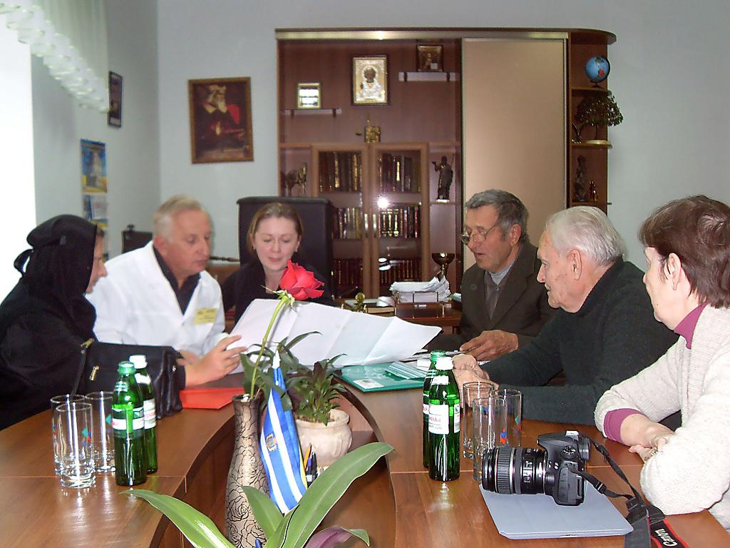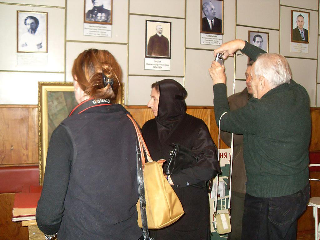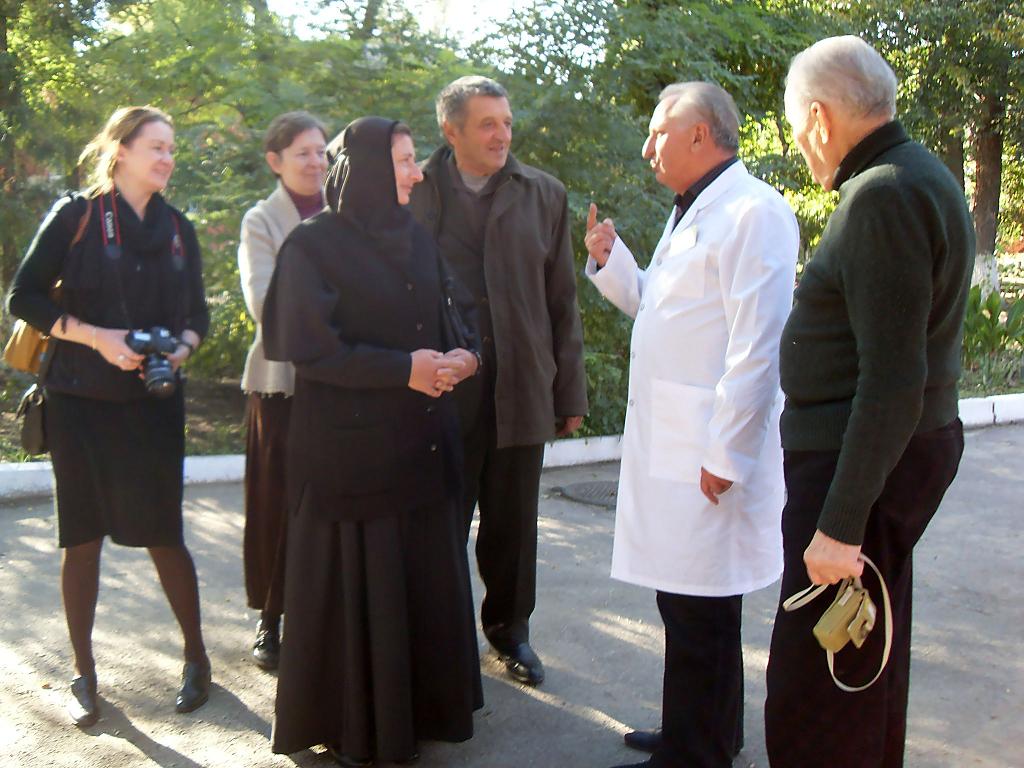 После осмотра акушерского корпуса больницы, не в малом сохранившего свою историческую первозданность, гости посетили кабинет истории, где познакомились с экспонатами нескольких эпох, а также обозрели территорию учреждения – прикоснулись к столетним каштанам, высящимся со времени 1914 года и ставшим сегодня эмблемой больницы. Отметив мощь зданий и ту особенную атмосферу, какую они хранят, подчёркнутую памятью современников, визитёры выразили руководству больницы благодарность за тёплую встречу и, пообещав информировать в случае появления новых сведений, имеющих отношение к истории больницы и роду Тропиных, отправились в дальнейшую дорогу. Следующие места, которые Дурилины планируют посетить в Херсоне – дом Тропиных (ныне здание облпотребсоюза), а также могила семьи Тропиных.