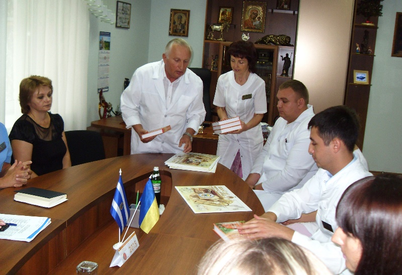 В конце встречи Леонид Ремыга со своими заместителями вручил ребятам символичные подарки – юбилейный календарь и книгу, выпущенные к столетию больницы, который мы отмечали в 2014 году.