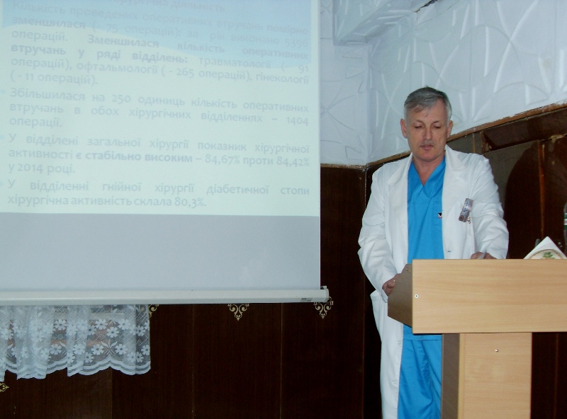 З основною доповіддю про роботу медзакладу виступив головний лікар Леонід Ремига, проаналізувавши показники діяльності служб, поліклінік і відділень за рік.