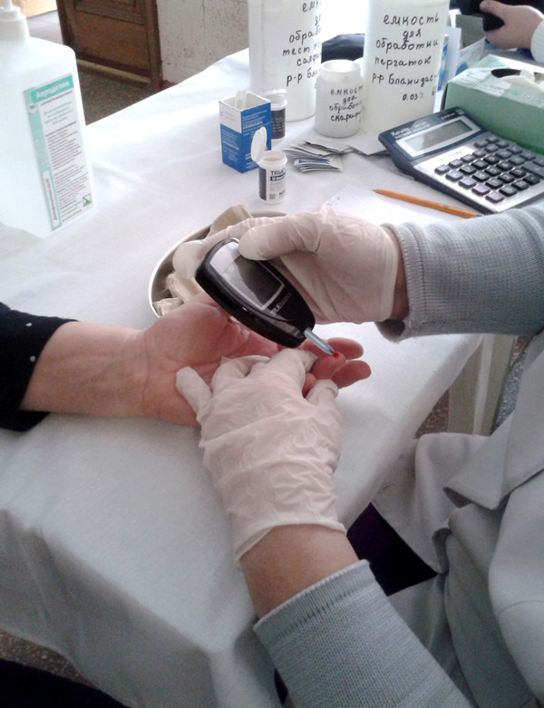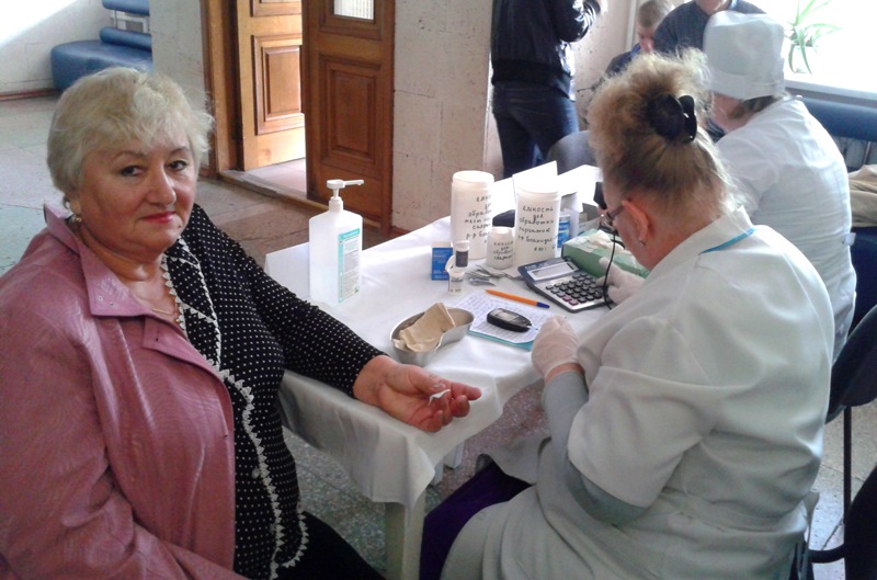 Во всех поликлиниках в течение трёх часов желающим посетителям проводилось измерение артериального давления и экспресс-анализ уровня сахара крови.