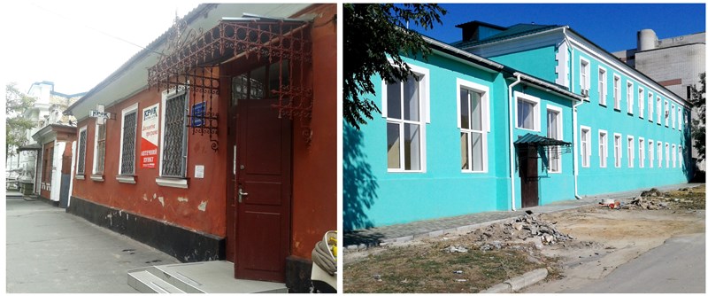 Старое здание детской поликлиники (ул. Суворова 39) и новое помещение на стадии завершения ремонта (ул. Комарова 2)