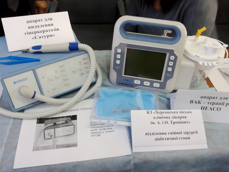 Поэтому данное специализированное отделение имеет актуальность и востребованность. Как рассказал его руководитель Виктор Гандзюк, благодаря оснащению современной медицинской аппаратурой (аппарат фототерапии BIOPTRON Pro1 фирмы «Zepter»; аппарат для вакуумной терапии ран фирмы «Heaco»; аппарат для удаления гиперкератозов «Сатурн»), помимо основного направления хирургических вмешательств, в отделении значительно расширился спектр аппаратного лечения и профилактики осложнений диабета, связанных с нарушением поступления кислорода в ткани нижних конечностей, и за год работы отмечаются хорошие результаты.