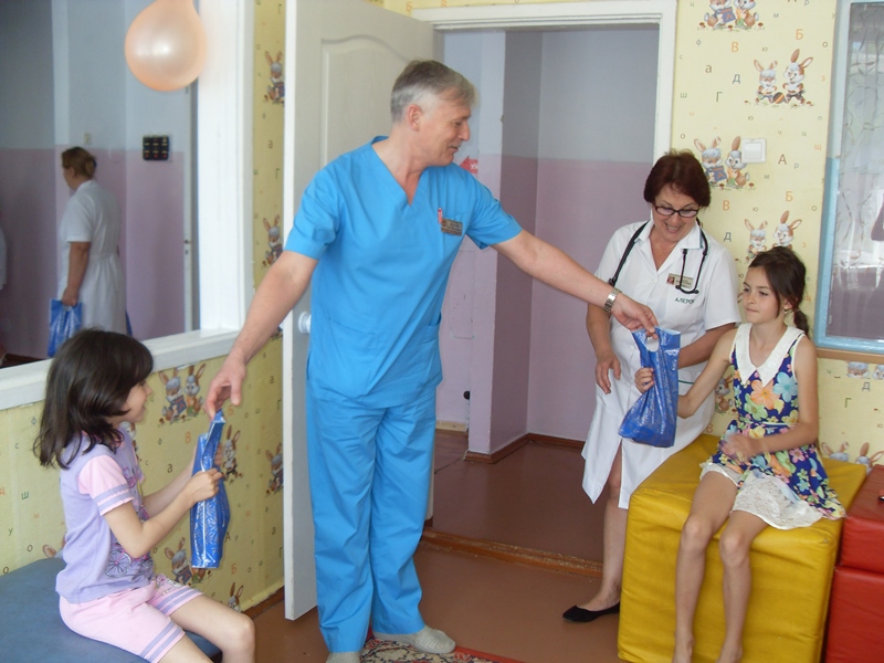 В День защиты детей,1 июня, по традиции детское отделение ежегодно с поздравлениями и подарками посещает администрация больницы.