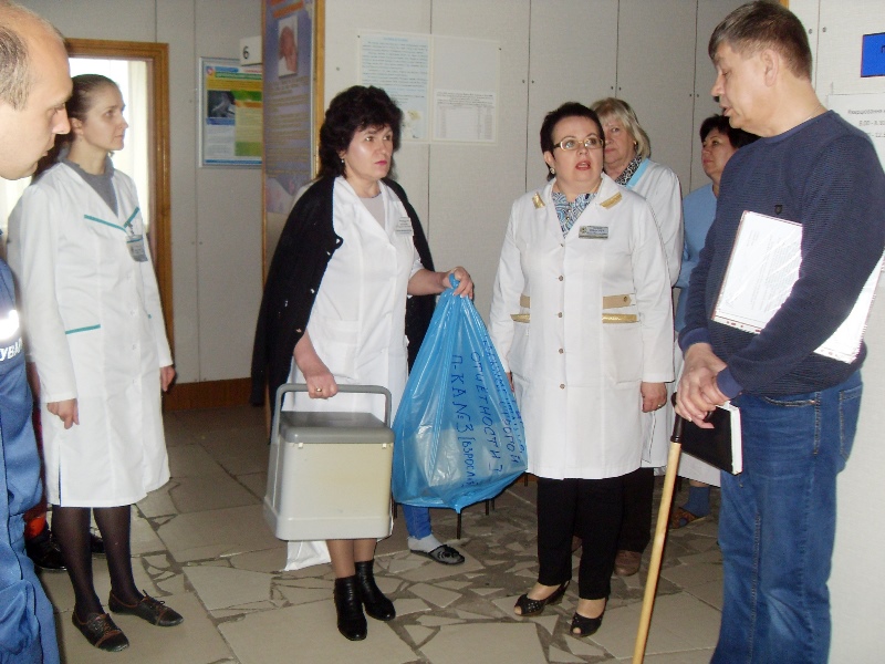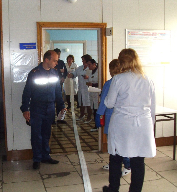 На этот раз площадкой для учения послужила детская поликлиника №3, где было отработано две вводные в соответствии с задачами занятий.