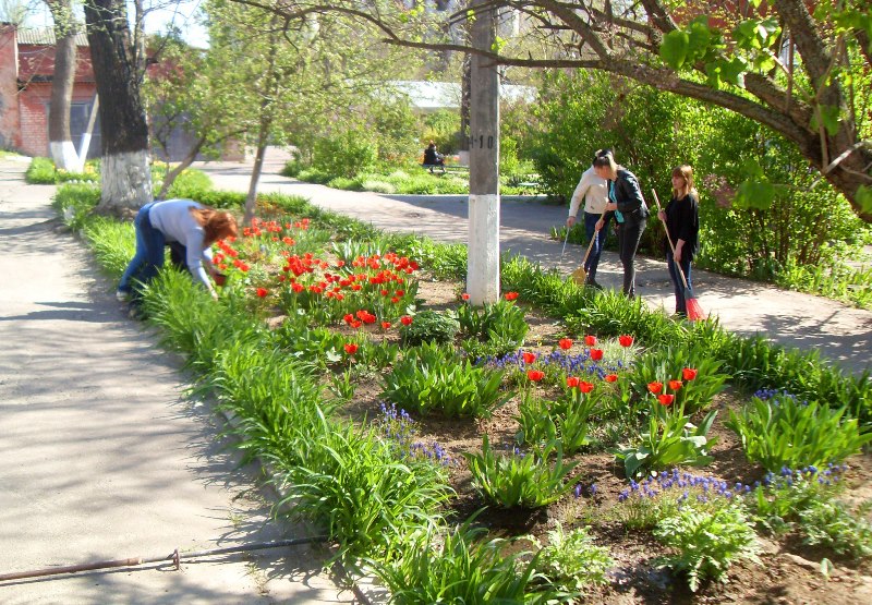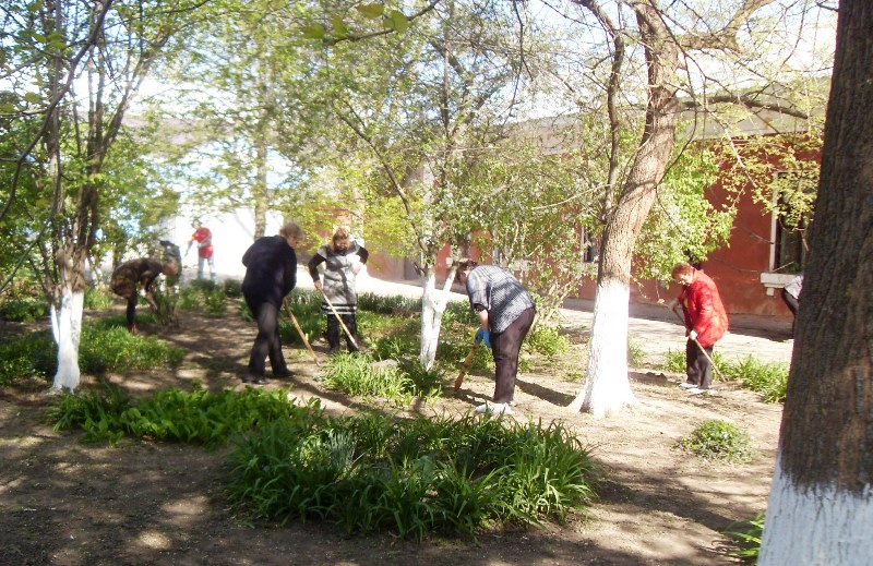 Многие работы по уборке и приведению в надлежащий вид территории больницы, а также прилегающих и закреплённых территорий были начаты сотрудниками загодя: ремонт и покраска ограждений и фасадов, побелка бордюров и деревьев, обрезка и чистка кустов, вывоз мусора и т.д. Поэтому сегодня – больше занимались очисткой участков от оставшегося мусора и травы, обработкой цветников, клумб, высадкой цветов.