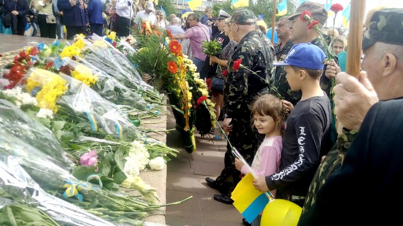 Поклониться погибшим героям, которые освобождали нашу страну и боролись за наш город, пришли сотни херсонцев, ветераны, представители городской и районной власти, сегодняшние воины АТО, студенческая молодёжь, учащиеся школ Корабельного района.
