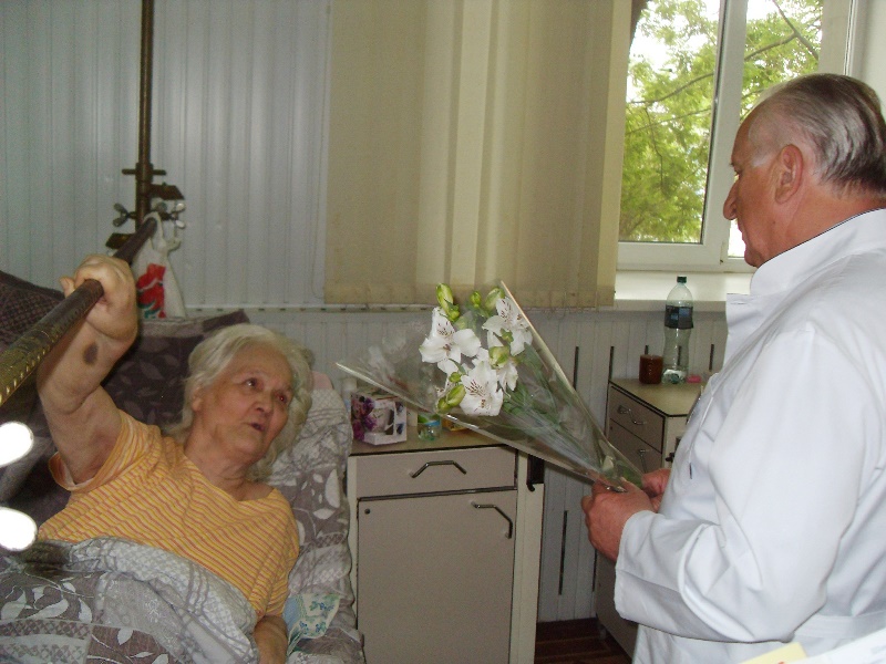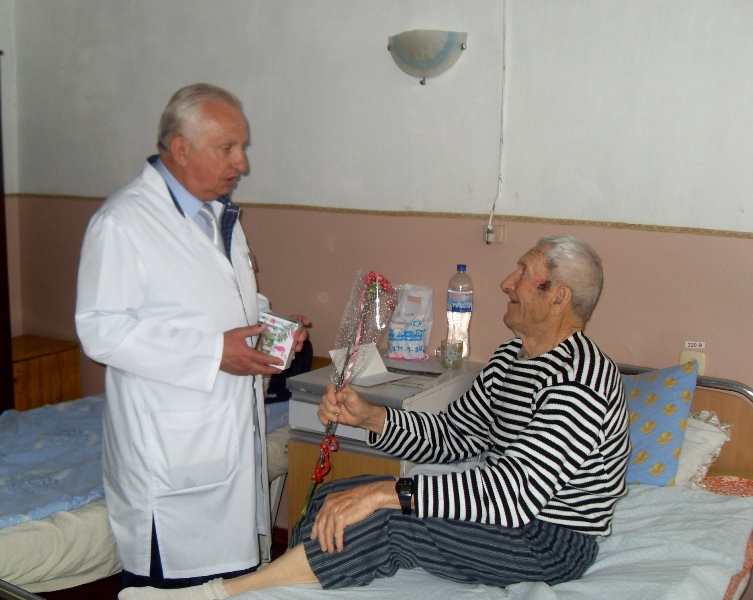 Вместе с тем на сегодняшний день в отделениях больницы на стационарном лечении находятся 11 человек, имеющих статус участника боевых действий и ветерана войны. По случаю праздника администрация больницы сочла нужным отметить вниманием этих пациентов. Сотрудники отделений вместе с руководством больницы поздравили их, пожелав здоровья, оптимизма, долгих лет жизни и поинтересовавшись ходом лечения каждого больного. Всем ветеранам были вручены поздравительные пакеты, открытки и цветы.