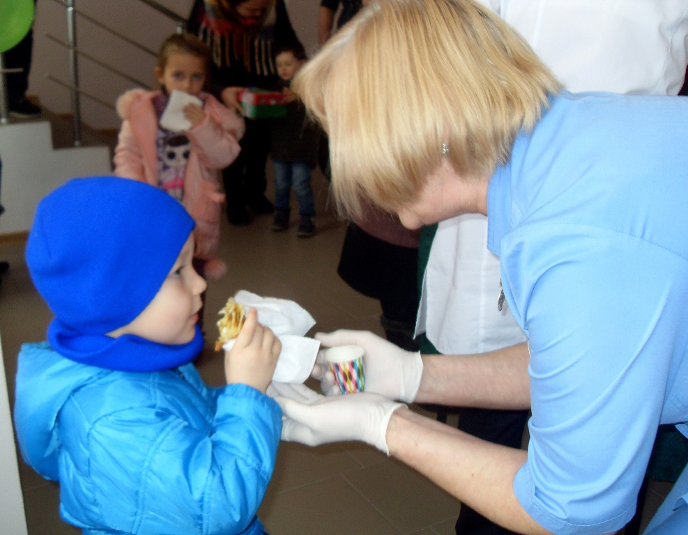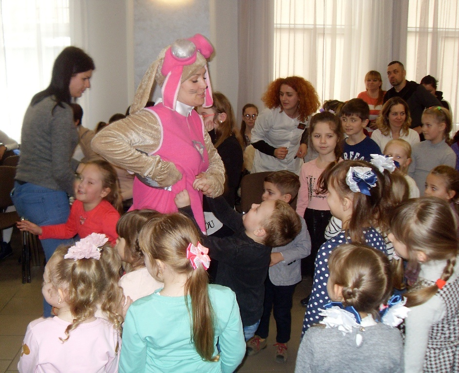 С радостью ребята встретили главного врача больницы Леонида Ремыгу, которого многие дети уже знают – из-за постоянной его заботы и внимания, различных мероприятий с участием детей, из-за работы родителей или бабушек-дедушек. Леонид Тимофеевич поздравил коллектив с праздником, поблагодарил за отклик на приглашение и за ту атмосферу, которая в зале, пожелал всем здоровья и выразил надежду, что, возможно, сегодня здесь присутствуют ребята, которые завтра придут на работу в нашу больницу.