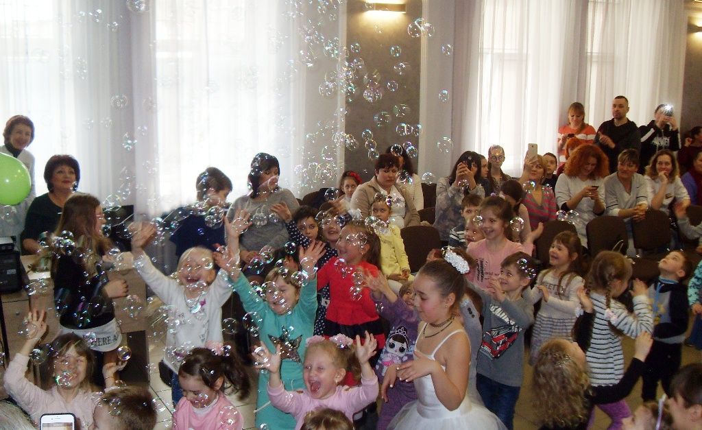 Кульминацией праздника стал взрыв тысячи мыльных пузырей, заполнивших зал и погрузивших взрослых и детей на несколько минут в сказку. Эти минуты запомнятся, как те самые блики счастья, которые мы часто теряем в суете жизни.