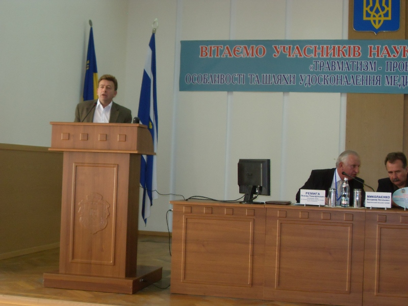Открывая конференцию, главный врач больницы Леонид Ремыга подчеркнул значимость собрания, отметив, что проблема травматизма сегодня заостряется во всём мире. Только от травм в дорожно-транспортных происшествиях ежегодно погибают 1,3 млн человек и от 20 до 50 млн получают различные повреждения. Ежедневно более 2 тыс. детей погибает в результате случайных травм и ежегодно десятки миллионов детей во всём мире попадают в больницы с травмами, из-за которых они часто остаются инвалидами на всю оставшуюся жизнь. Он также заметил, что только в Херсонский городской травматологический пункт ежегодно обращается около 5 тысяч человек с переломами разной локализации и сложности, госпитализируются в отделения больницы 650-700 пострадавших. При неблагоприятных погодных условиях в течение суток на травмпунт обращается 100-120 пострадавших.