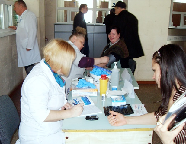 Учитывая эти факторы, уже традиционно в тематические дни в холле поликлиники в течение нескольких часов сотрудники эндокринологической и терапевтической служб проводят измерение сахара крови и артериального давления всем желающим посетителям, рассказывая об основных причинах и последствиях диабета, его связи с развитием других заболеваний, в первую очередь нарушений деятельности сердца и кровеносных сосудов, а также главных мерах по поддержанию здоровья.