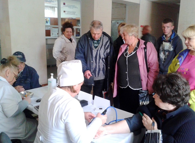 Во всех поликлиниках в течение трёх часов желающим посетителям проводилось измерение артериального давления и экспресс-анализ уровня сахара крови.