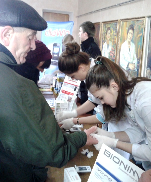 Нужно также заметить, что лекционной части форума традиционно предшествовала выставка-продажа продукции известных фирм-производителей медпрепаратов и средств самоконтроля, организованная в холле исполкома. Всем желающим бесплатно проводился экспресс-анализ уровня глюкозы крови, раздавались тематические буклеты, оказывалась консультативная помощь.