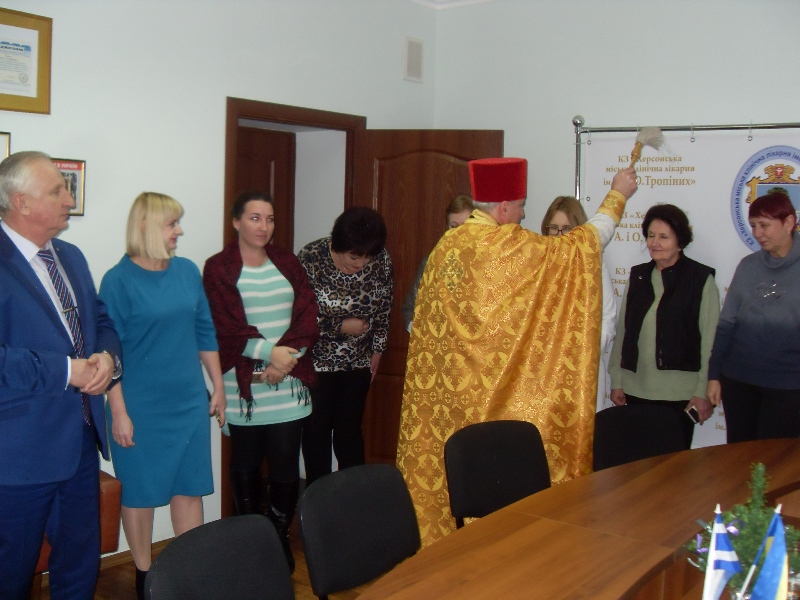 Сегодня, в День Крещения Господнего или Богоявления клирик больничного храма святой великомученицы Варвары, расположенного на территории клинической больницы им. А. и О. Тропиных, отец Олег окропил святой водой с молитвой о здравии сотрудников и болящих.