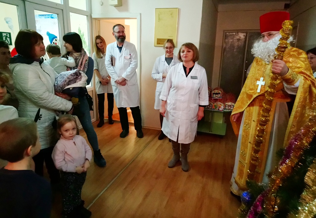 Головним сюрпризом цього дня була присутність у відділенні справжнього Святого Миколая. В образі сивобородого, мудрого й доброго мандрівника з'явився священик лікарняного храму Олег Стецюк, який звернувся до дітвори з побажаннями якнайшвидшого одужання, а ще добра і щастя в сім'ях, красивих і щирих посмішок, які роблять наше життя світлішим.